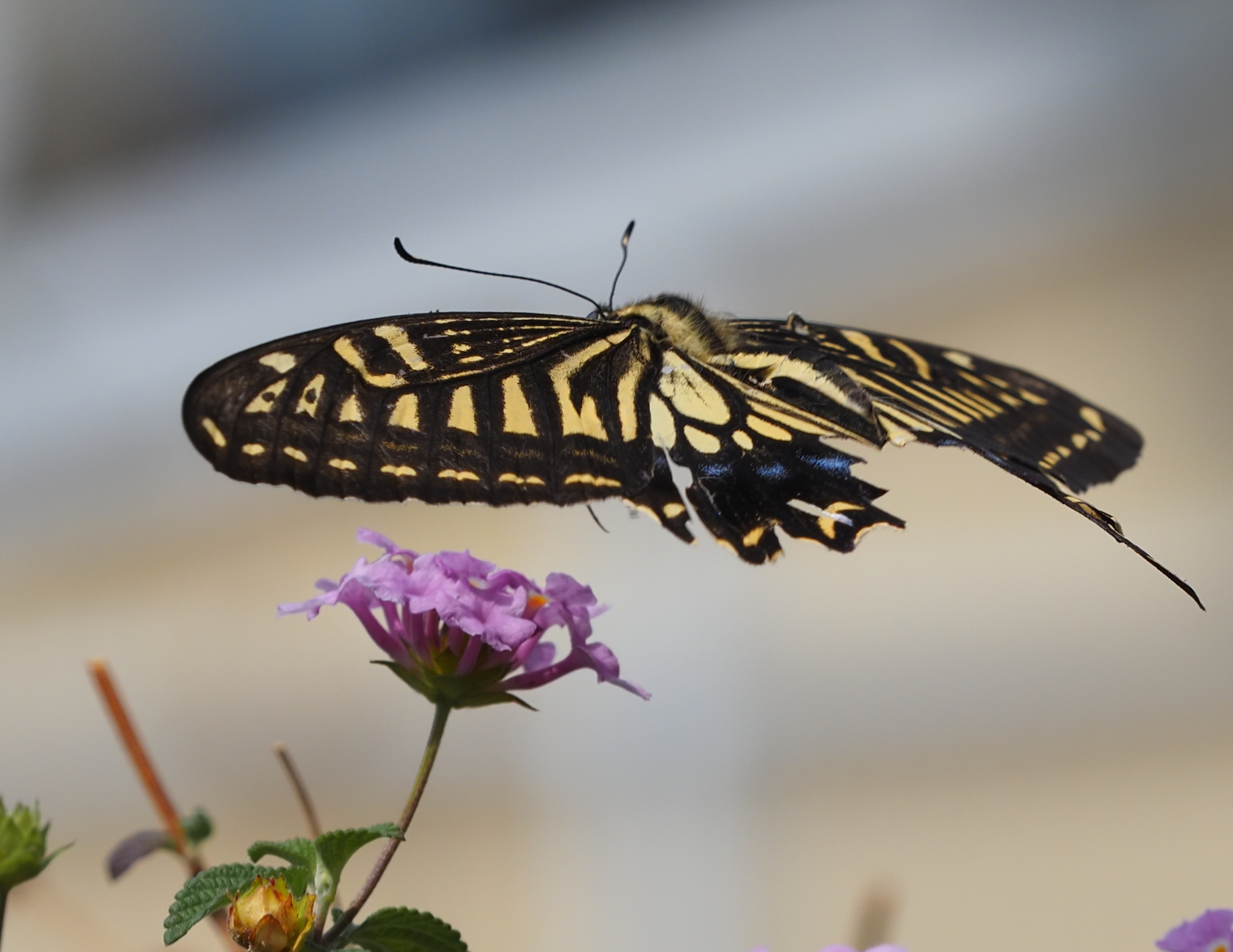 Perhaps because swallowtails sometimes emerge from the trees in my garden, my home seems to have become part of their daily route.