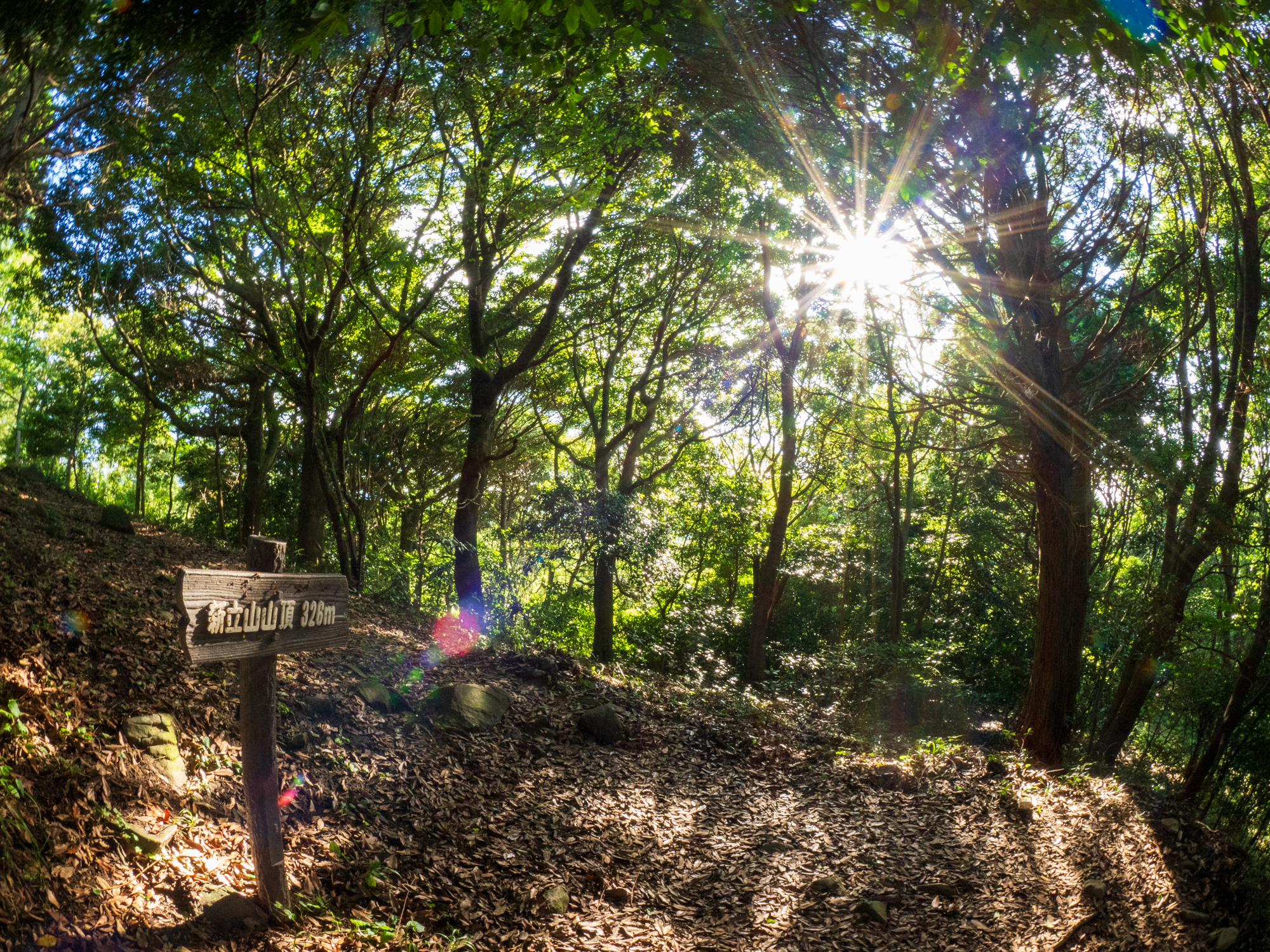 新立山は、標高326メートルほどの低山ですが、福岡県宗像市と宮若市の境界付近に位置するため、とても見晴らしが良いです。自宅からもほど近く、足が達者な方は毎日登る方もいらっしゃるくらい親しみやすい山でもあります。正助ふるさと村の駐車場から登るのが一般的なルートと思いますが、手入れの行き届いた杉林が美しく、危険な箇所もないので還暦杉野の私でも何とか楽しめる山です。